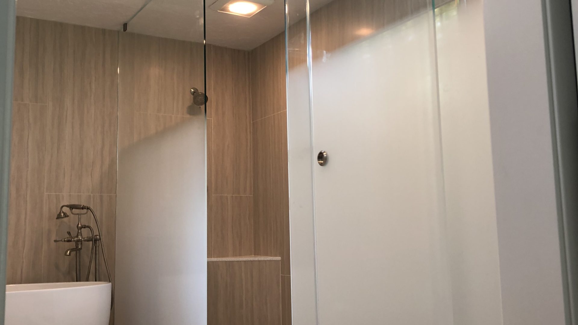 Our Installers installed this beautiful Cascade Shower Panel and Water Closet with 3/8" (Gradient Glass).